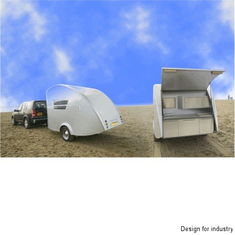 Teardrop Travel Trailer design for a new travel trailer. made entirely from aluminium. has big sleeper in front and a outdoor kitchen in the back. kitchen overview Image 3 of 3
